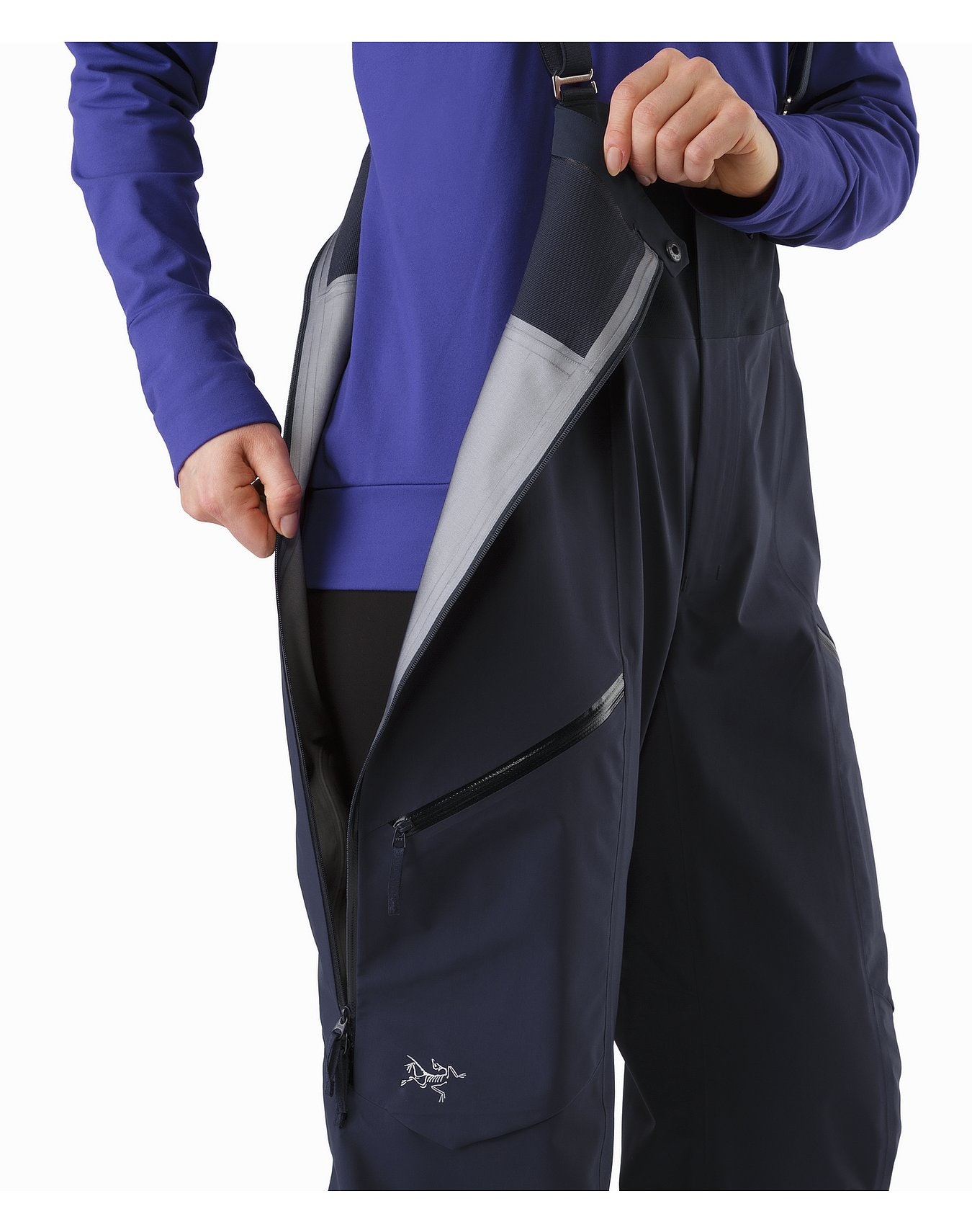 - Pockets: zip pocket on bib, right thigh zip pocket with key leash, left zip pocket with additional volume