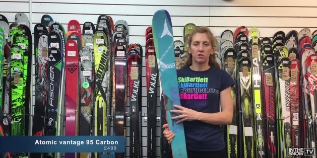 The Atomic Vantage 95 C W is our top progressive all-mountain ski for women. It has a 95mm waist width and distinctly wide footprint for performing in any snow and on any terrain. The ski features Carbon Tank Mesh, a layer of rigid woven mesh that adds strength across the ski while actually reducing weight. It also features the iconic Vantage Firewall, an extra full sidewall for awesome power transmission and edge grip on hard pack. While the Light Woodcore and all Mountain Rocker in tip and tail makes floating through powder and chop a breeze.