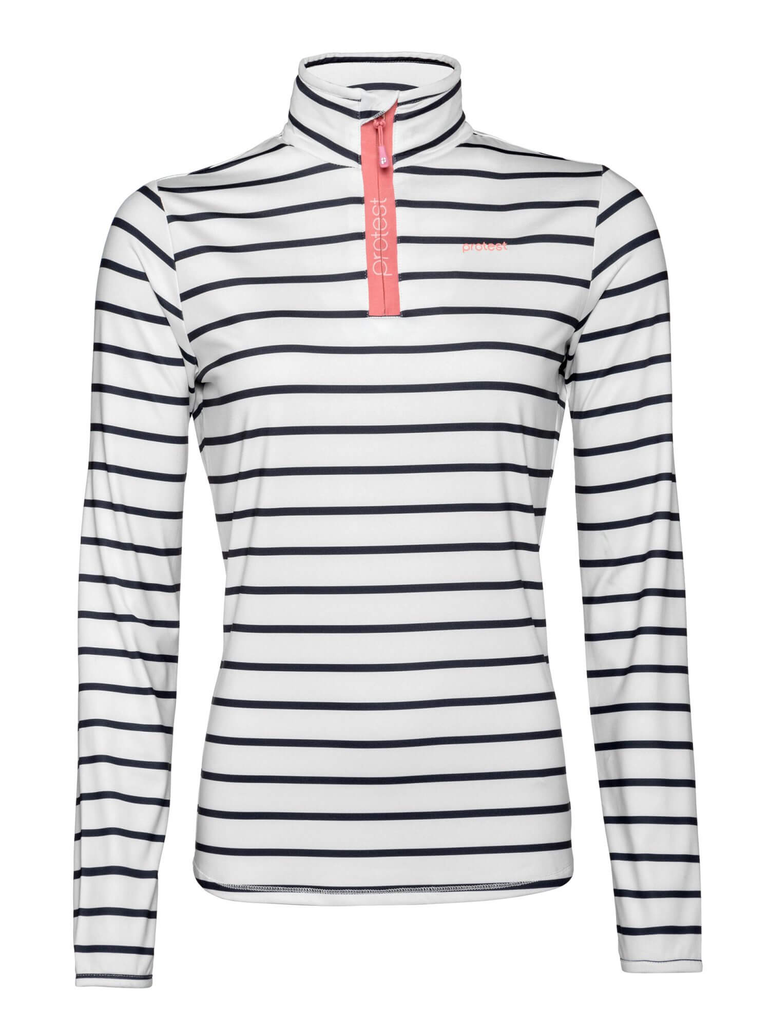 Introducing the Tipsy by Protest. This marvellous mid layer is part of our Geotech series, meaning it’s highly functional. The Tipsy is made from breathable, moisture-wicking and super-quick drying tech jersey. The fabric has 360 degree stretch, making all your crazy moves possible – hold nothing back. Another important attribute is that the Tipsy is a great insulator. Printed with a stripe design, there is a double layer of fabric at the high collar for extra warmth and protection from the elements. We’ve also used super soft thread so the stitching will not irritate your skin. Just what you need to bring some warmth to your outfit, the Tipsy by Protest.