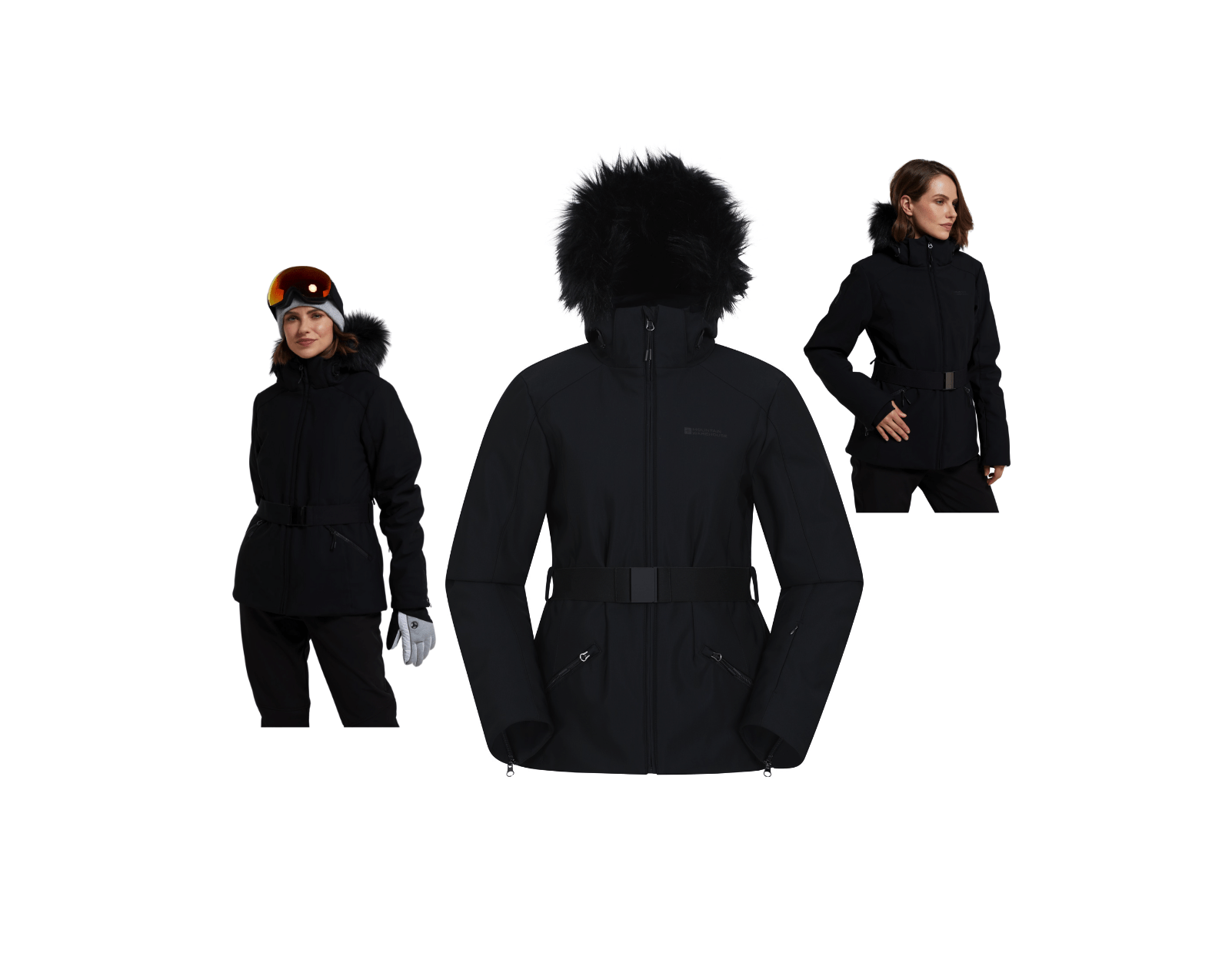 Discover the Mountain Warehouse Swiss Women’s Recco Ski Jacket, designed with ski enthusiasts in mind! this jacket pairs snowproof and breathable fabric with a chic belted design, making it a must-have for your next adventure on the slopes.