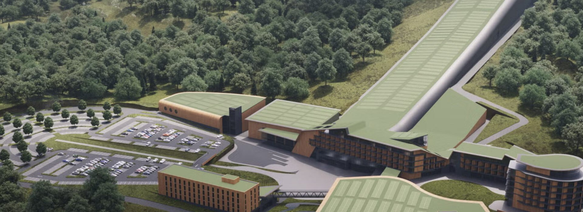 Plans for the UK’s largest indoor snow centre, anchoring a huge leisure resort at Rhydycar West, were first announced in the early 2010s, with formal proposals beginning to take shape around 2012–2013. The development includes a 400‑metre ski slope meeting international competition standards, a tropical waterpark, adventure hubs, hotels, woodland lodges, and a conference centre.